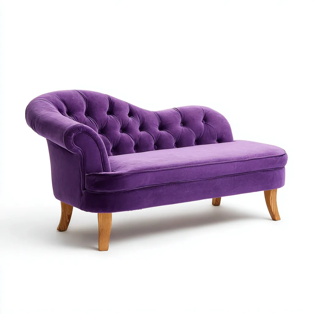 La struttura è realizzata in legno ed è rivestita in tessuto di colore viola. L'imbottitura assicura una seduta morbida e uniforme, mentre le finiture curate contribuiscono a un aspetto raffinato e coerente con ambienti classici.