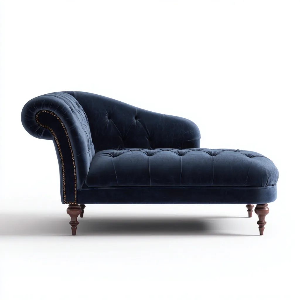 Questa chaise longue in stile classico è progettata per offrire una seduta elegante e confortevole in soggiorni, studi e spazi dedicati al relax. La linea morbida e avvolgente consente di distendersi comodamente, creando un'area ideale per il riposo e la lettura.