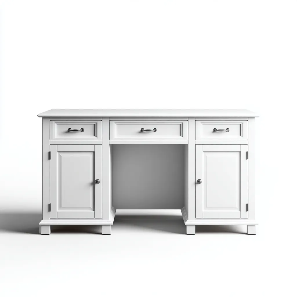 La scrivania è realizzata in MDF con finitura bianca uniforme, progettata per assicurare solidità strutturale e un aspetto raffinato. Le superfici lisce facilitano la manutenzione quotidiana e contribuiscono a un utilizzo pratico nel tempo.