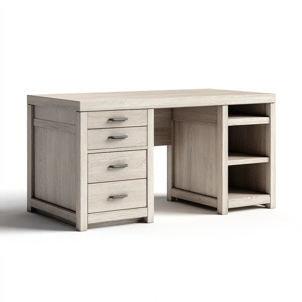 La scrivania integra soluzioni di contenimento che permettono di sistemare documenti e oggetti da ufficio, contribuendo a mantenere lo spazio di lavoro organizzato e ben strutturato.